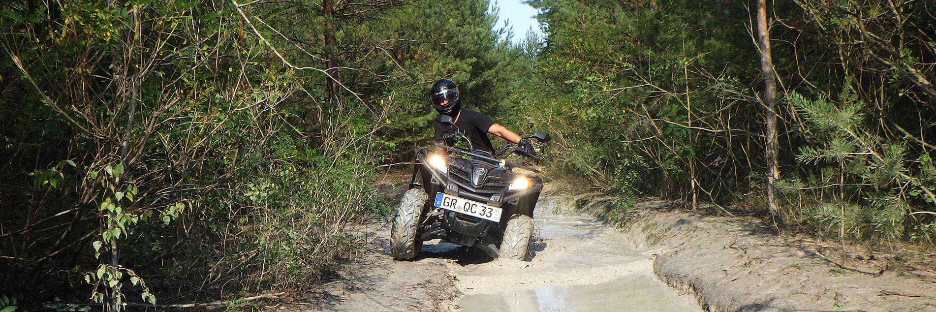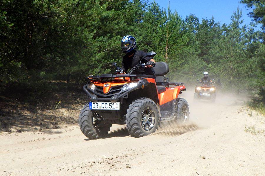 Nach einer ausführlichen Einweisung durch unsere geschulten Quadguides werden ein paar Übungsrunden absolviert. Danach wird auf befestigten und unbefestigten Strecken der Lausitz gefahren. Schon nach kurzer Zeit habt ihr alle Untergründe gut im Griff und genießt das besondere Fahrgefühl auf 4 Rädern. Noch abenteuerlicher wird es dann fernab der asphaltierten Straßen, wo man seine Geschicklichkeit auf abwechslungsreichen und sandigen Buckelpisten unter Beweis stellen kann. Lasst euch überraschen und genießt ein Abenteuer der besonderen Art. Es werden natürlich auch kurze Zwischenstopps für Infos rund ums Quad und die Lausitz eingelegt. Diese Touren sind bestens für Einsteiger und Fortgeschrittene Teilnehmer geeignet.