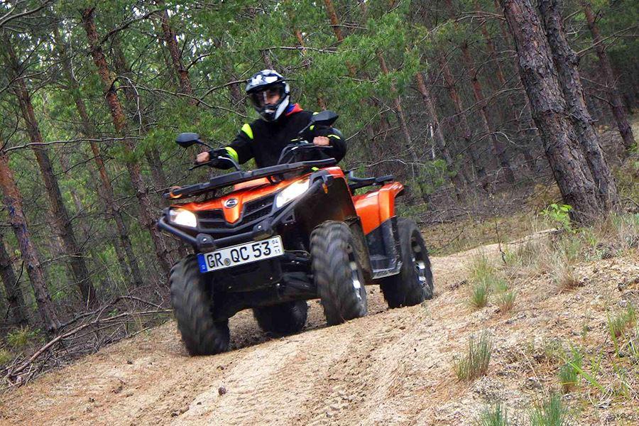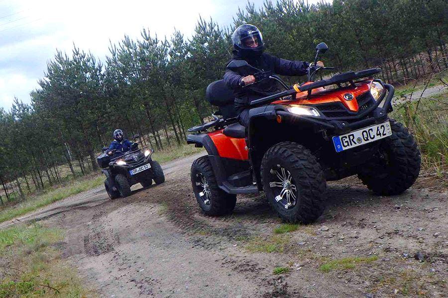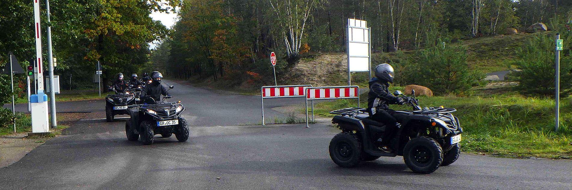 Nach einer ausführlichen Einweisung durch unsere geschulten Quadguides werden ein paar Übungsrunden absolviert. Danach wird auf befestigten und unbefestigten Strecken der Lausitz gefahren und schon nach kurzer Zeit habt ihr alle Untergründe gut im Griff. Es geht durch die grünen Wälder der Lausitz mit abwechslungsreichen Wegen im On-/Offroadstil bis zur deutsch-polnischen Grenze. Wir fahren danach im polnischen Teil weiter und überraschen die Teilnehmer mit spannenden abenteuerlichen Impressionen. Es werden natürlich auch sehr interessante Zwischenstopps eingelegt und dabei viele Infos rund um das Grenzgebiet und Quadfahren vermittelt. Auch ein leckeres Mittagessen und Zwischensnacks sind in dieser Tour inklusive. Ein Erlebnis der absoluten Premiumklasse für besonders ambitionierte, erfahrene und anspruchsvolle Quadtourenfans mit jeder Menge Unterhaltung, Spannung, Spaß, Abwechslung, Action und Outdoorfeeling pur - einen kompletten tollen Tag lang.