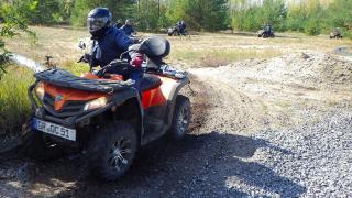 Nach einer ausführlichen Einweisung durch unsere geschulten Quadguides werden ein paar Übungsrunden absolviert. Danach wird auf befestigten und unbefestigten Strecken der Lausitz gefahren. Schon nach kurzer Zeit habt ihr alle Untergründe gut im Griff und genießt das besondere Fahrgefühl auf 4 Rädern. Noch abenteuerlicher wird es dann fernab der asphaltierten Straßen, wo man seine Geschicklichkeit auf abwechslungsreichen und sandigen Buckelpisten unter Beweis stellen kann. Danach steuert ihr einen kleinen Bootshafen an, um eine lustige und entspannte Paddelfahrt zu erleben. Nach einer kleinen kulinarischen Stärkung geht’s dann wieder crossig weiter auf dem Quad. Lasst euch überraschen und genießt die perfekte Mischung aus fordernden und erholsamen Erlebnissen während der Tour. Es werden natürlich auch kleine Zwischenstopps für Infos rund ums Quad und die Lausitz eingelegt.