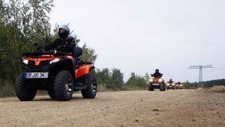 Nach einer ausführlichen Einweisung durch unsere geschulten Quadguides werden ein paar Übungsrunden absolviert. Danach wird auf befestigten und unbefestigten Strecken der Lausitz gefahren und schon nach kurzer Zeit habt ihr alle Untergründe gut im Griff. Es geht durch die grünen Wälder der Lausitz mit abwechslungsreichen Wegen im On-/Offroadstil bis zur deutsch-polnischen Grenze. Wir fahren danach im polnischen Teil weiter und überraschen die Teilnehmer mit spannenden abenteuerlichen Impressionen. Es werden natürlich auch sehr interessante Zwischenstopps eingelegt und dabei viele Infos rund um das Grenzgebiet und Quadfahren vermittelt. Auch ein leckeres Mittagessen und Zwischensnacks sind in dieser Tour inklusive. Ein Erlebnis der absoluten Premiumklasse für besonders ambitionierte, erfahrene und anspruchsvolle Quadtourenfans mit jeder Menge Unterhaltung, Spannung, Spaß, Abwechslung, Action und Outdoorfeeling pur - einen kompletten tollen Tag lang.